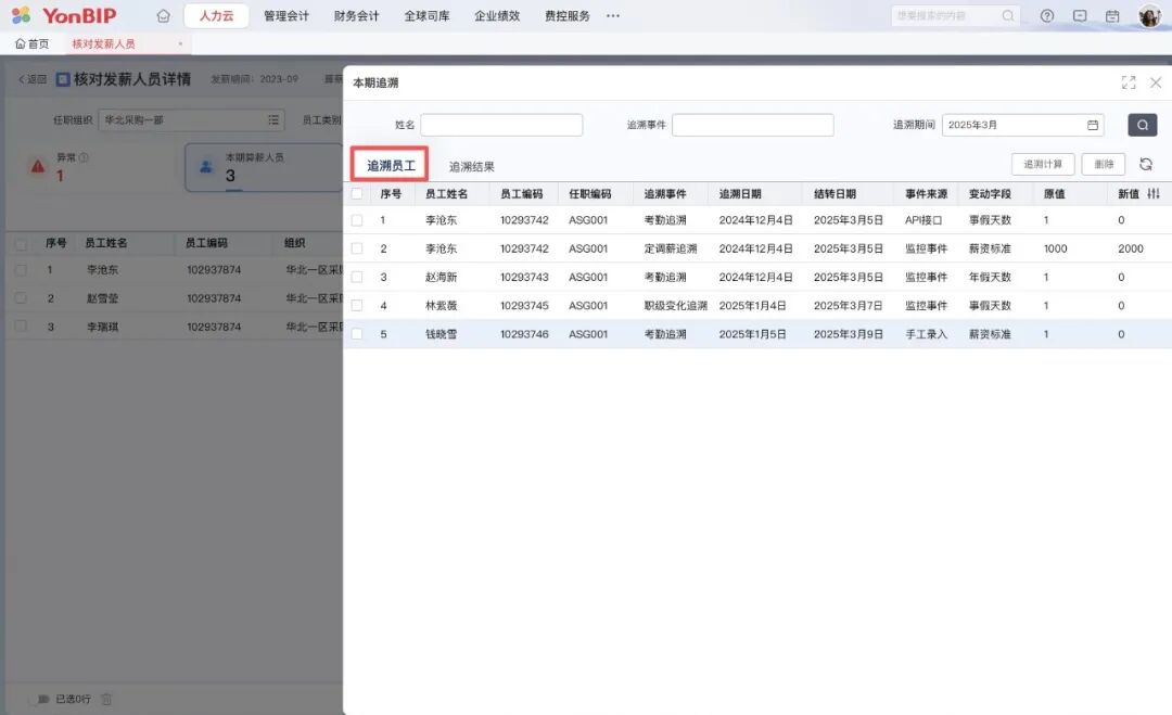4. 跨期发薪与补算场景:针对跨月调薪、离职补算等复杂发薪场景,追溯机制能精确结转差额,保证数据一致性。