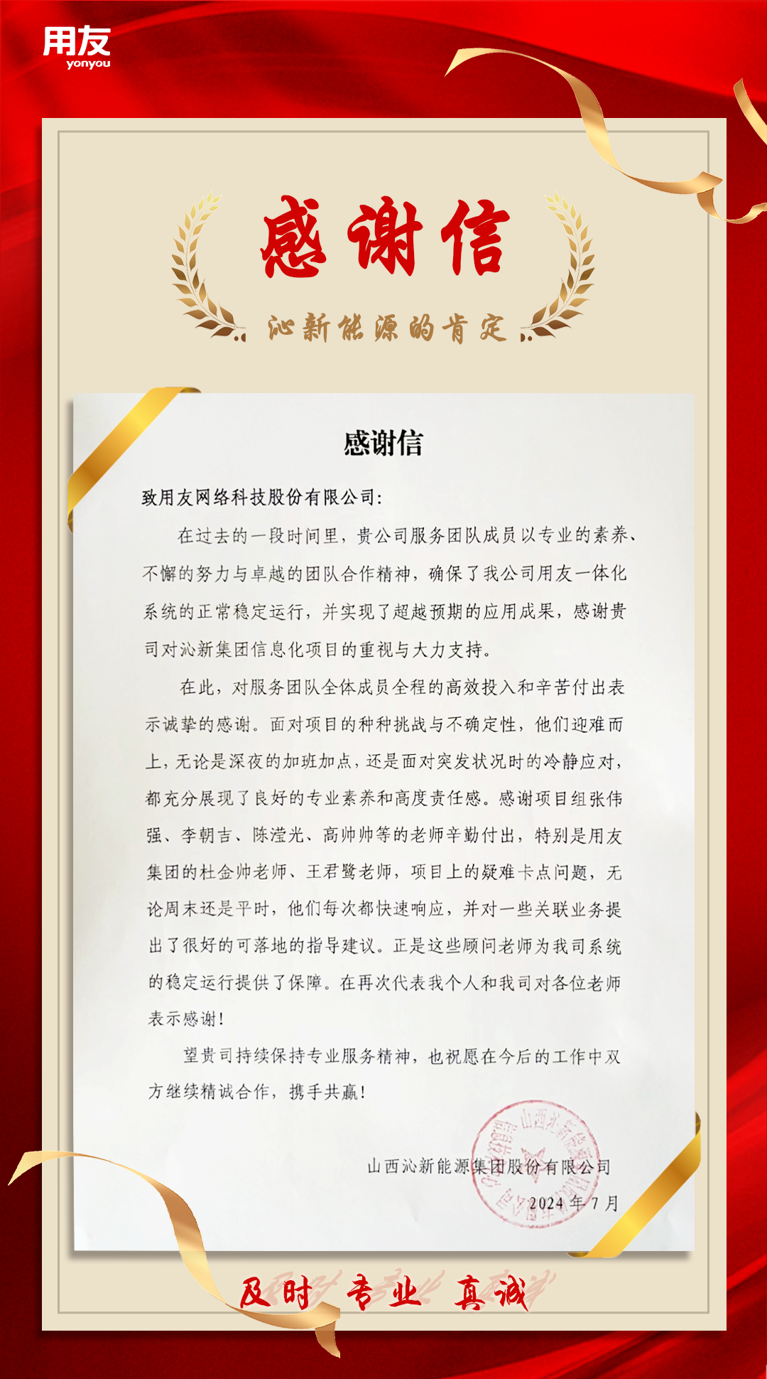 对服务团队全体成员全程的高效投入和辛苦付出表示诚挚的感谢。面对项目的种种挑战与不确定性,他们迎难而上,无论是深夜的加班加点,还是面对突发状况时的冷静应对,都充分展现了良好的专业素养和高度责任感。