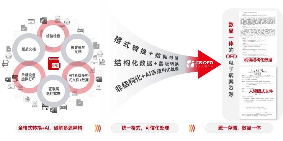 点聚OFD临床文档中心在构建结构化OFD文档方面提供了两种方法,以实现“数显一体”的OFD临床文档。一种方法具有较高的性价比,而另一种则深度融合了大语言模型,应用场景更为广泛。